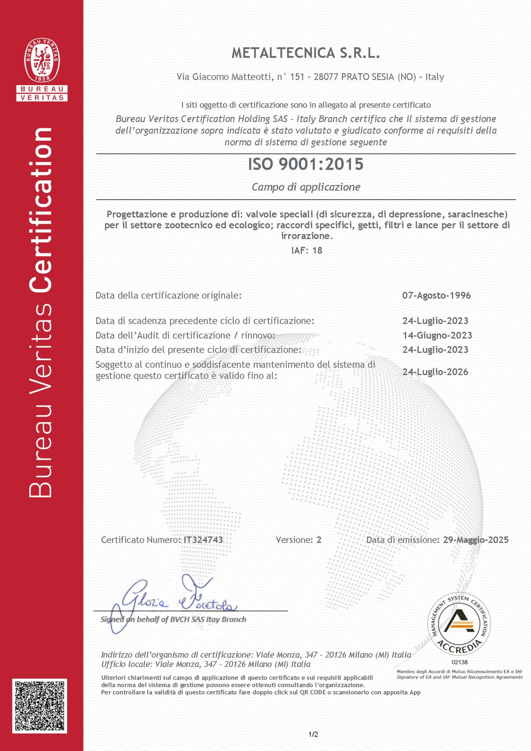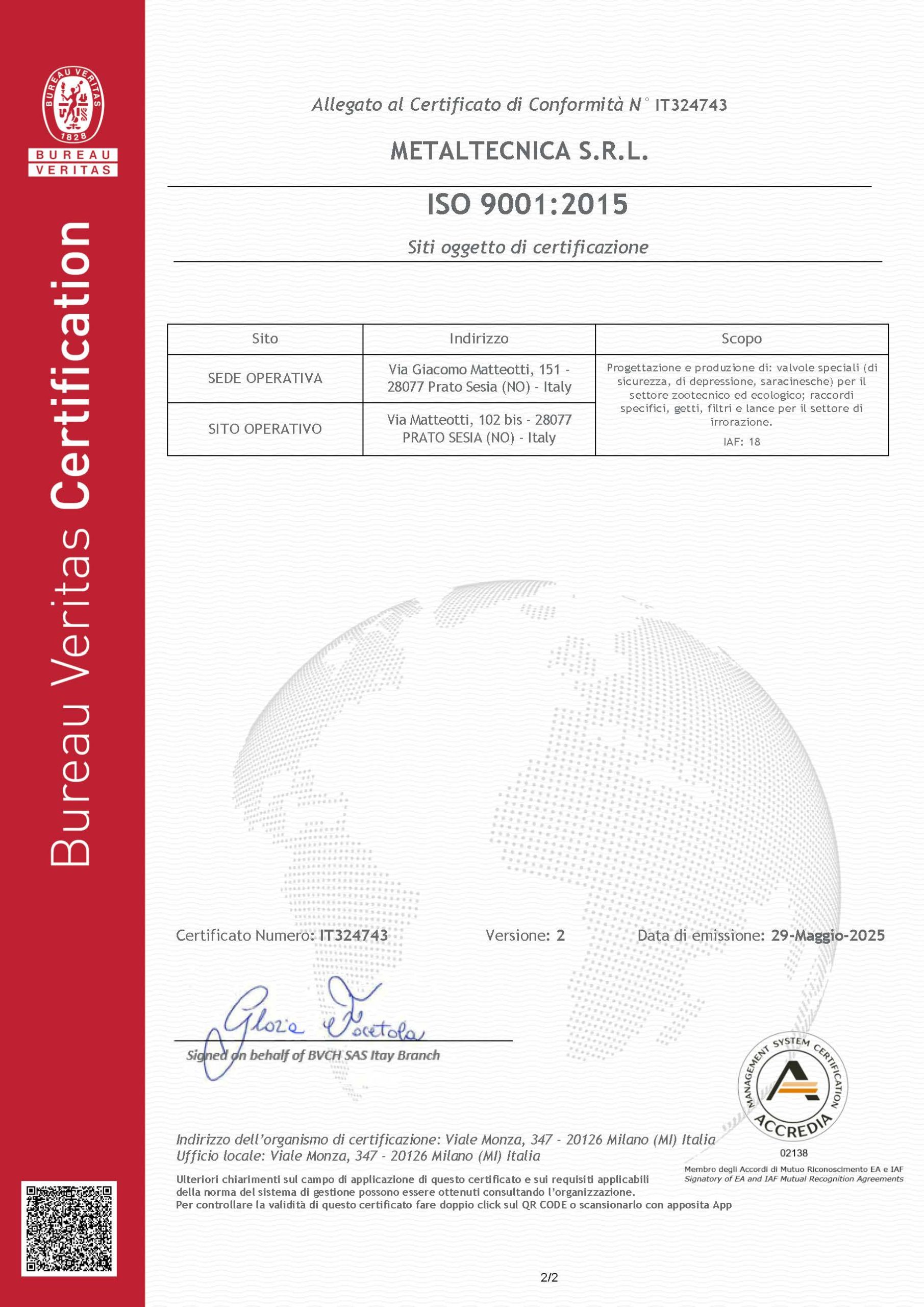 Nel 2015 abbiamo completato la revisione della certificazione ISO 9001, confermando il nostro impegno verso l’eccellenza operativa e la conformità agli standard internazionali.